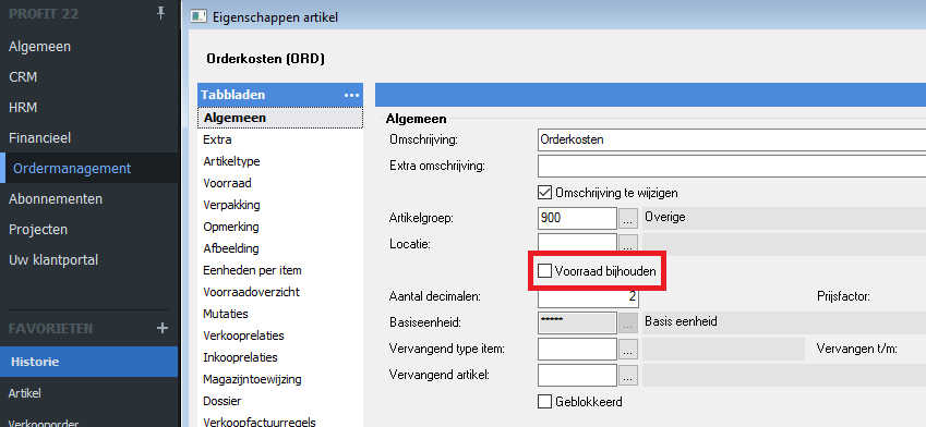 - Zorg dat er geen vinkje staat bij Voorraad bijhouden