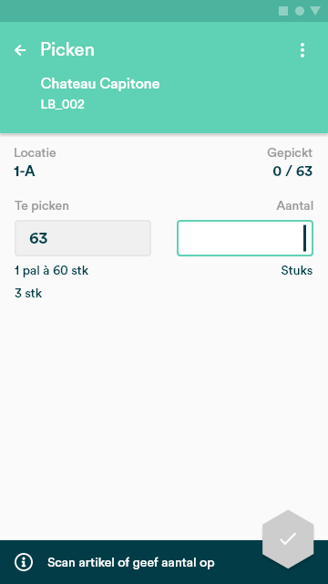 Voor batch artikelen tonen we de verkoopeenheid ook in het scherm waarin je het aantal voor het te picken batchnummer opgeeft.