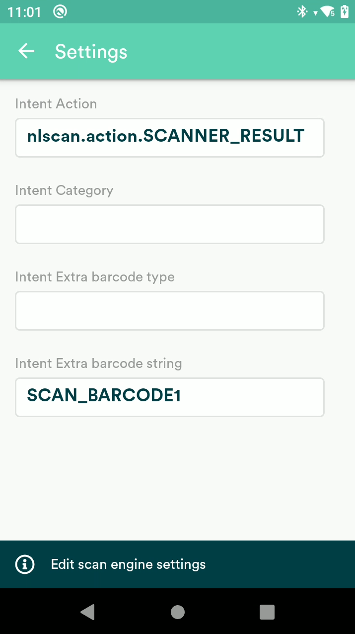 - Kies bij de scanner techniek voor "Intent Wedge Scan Engine"