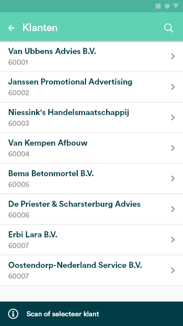 Nadat je de functionaliteit hebt geopend, dien je de klant te selecteren waarvoor je de retour wilt ontvangen. Dit kan handmatig, maar ook via een scan van het klantnummer of verkoopordernummer waarvoor er wordt geretourneerd.