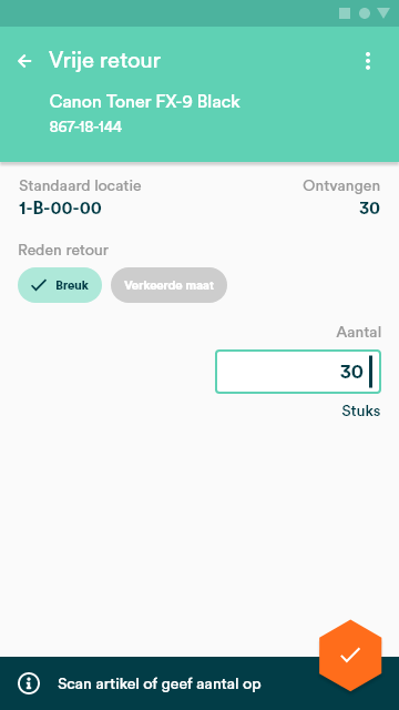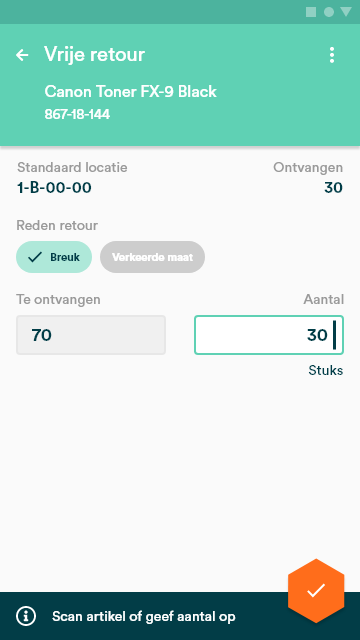 Vrije retouren ontvangen met de Warehouse app