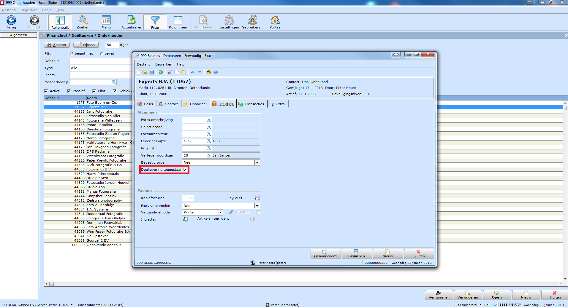 Vervolgens open je de debiteur waarvoor de instelling voor deelleveringen wilt wijzigen.