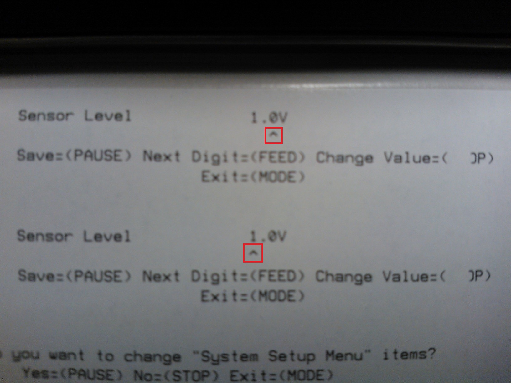 13. Als het Sensor Level op 1.0V staat, dan kunnen de instellingen opgeslagen worden. Druk op de knop PAUSE (=save).
