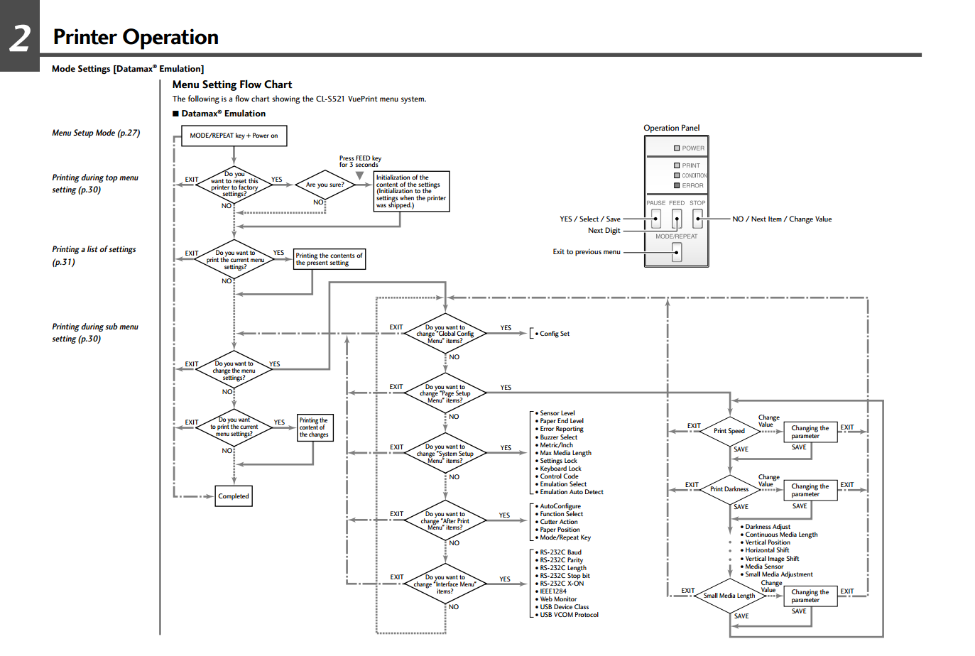 7. De volgende vraag die uit de labelprinter komt is "Do you want to change "System Setup Menu" items? Druk op de knop PAUSE (=Yes).