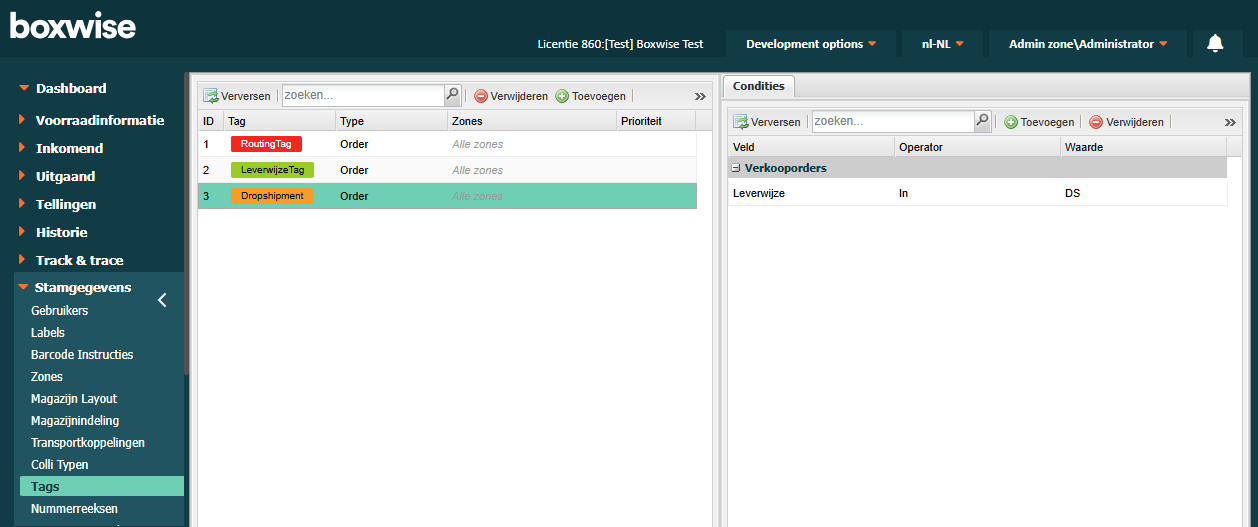 Welke orders de dropshipment-tag krijgen, bepaal je via de ordertag-instellingen. Vanaf versie 1.49 kun je ordertags configureren met condities en datasets, waardoor je flexibel kunt bepalen welke orders als dropshipment worden aangemerkt.